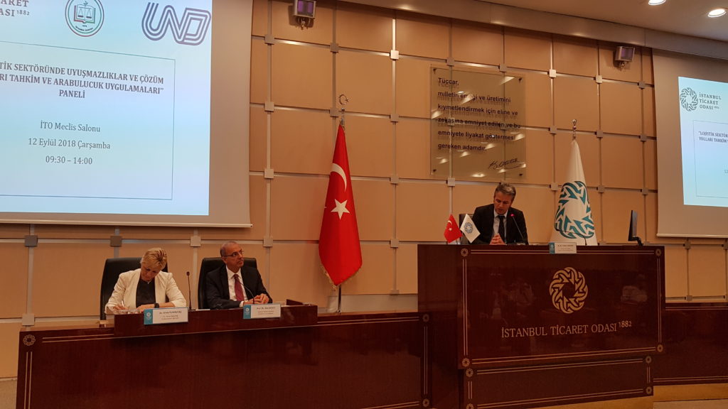 On 12 of September 2018, Prof. Dr. Ziya Akıncı, chairman of the executive board of ISTAC, delivered a speech on “Arbitration in the Logistics Sector” at the Conference on Disputes and Dispute Resolution Mechanisms in Logistics Sector held in Istanbul at the premises of the Istanbul Chamber of Commerce.